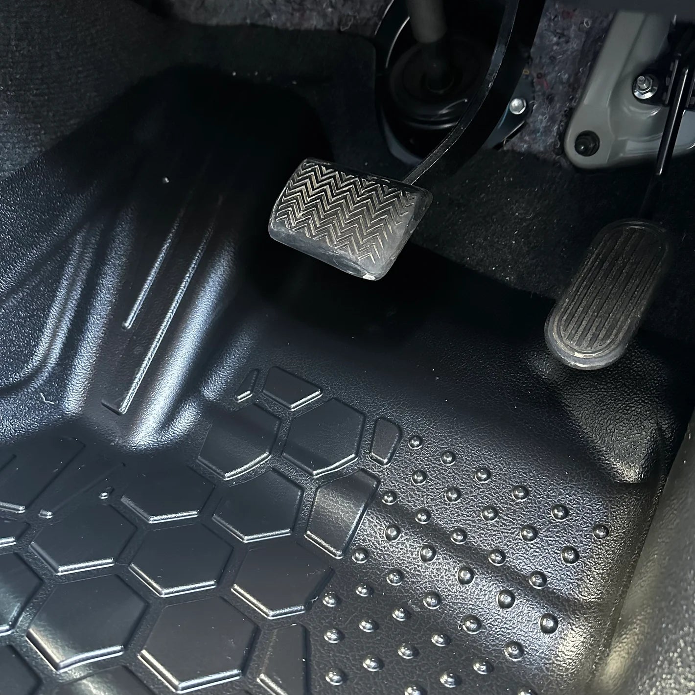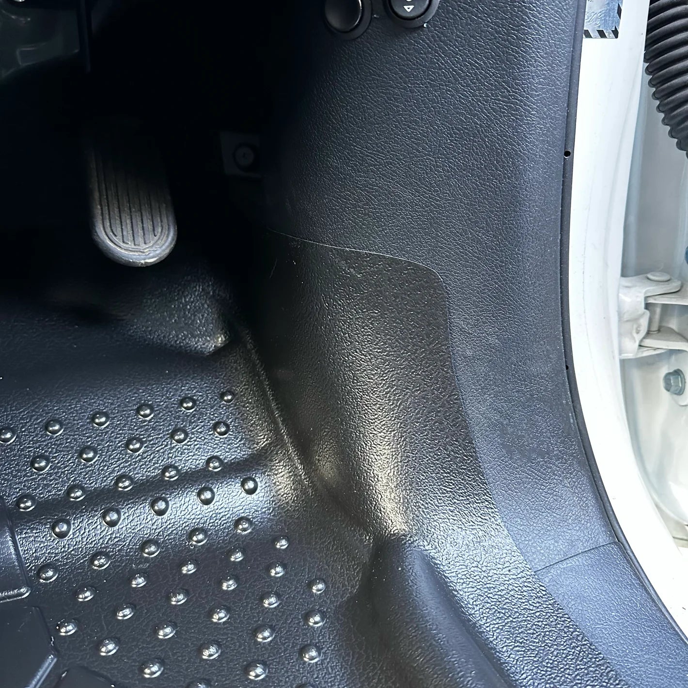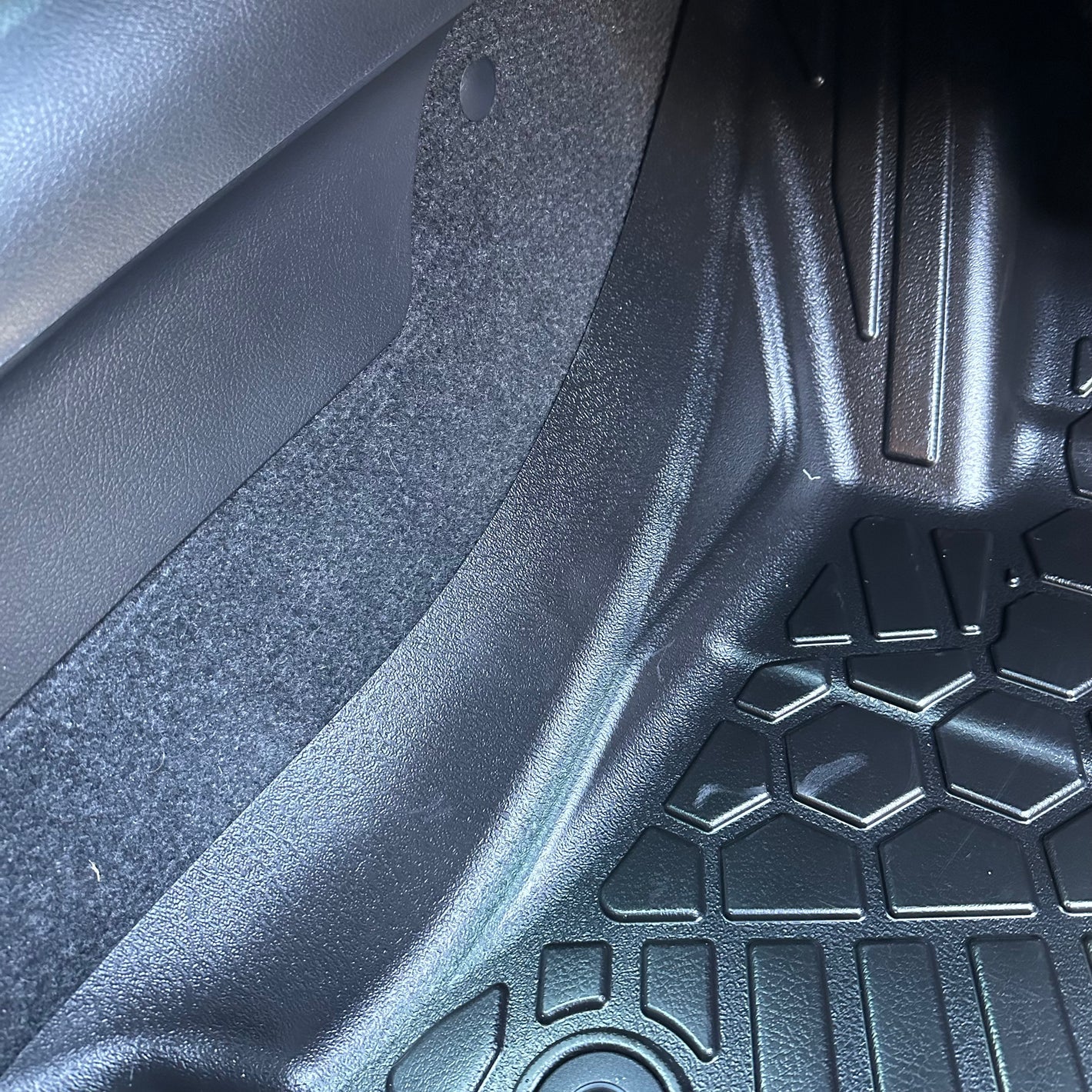 'A' pillar coverage is an important part of our 6 points of contact. It works to prevent movement while ensuring the deep dish coverage between the sill and footwell is complete. Too many other mats on the market have gaps in this area which leaves a large area of the carpet exposed and leaves the pillar prone to being scuffed.