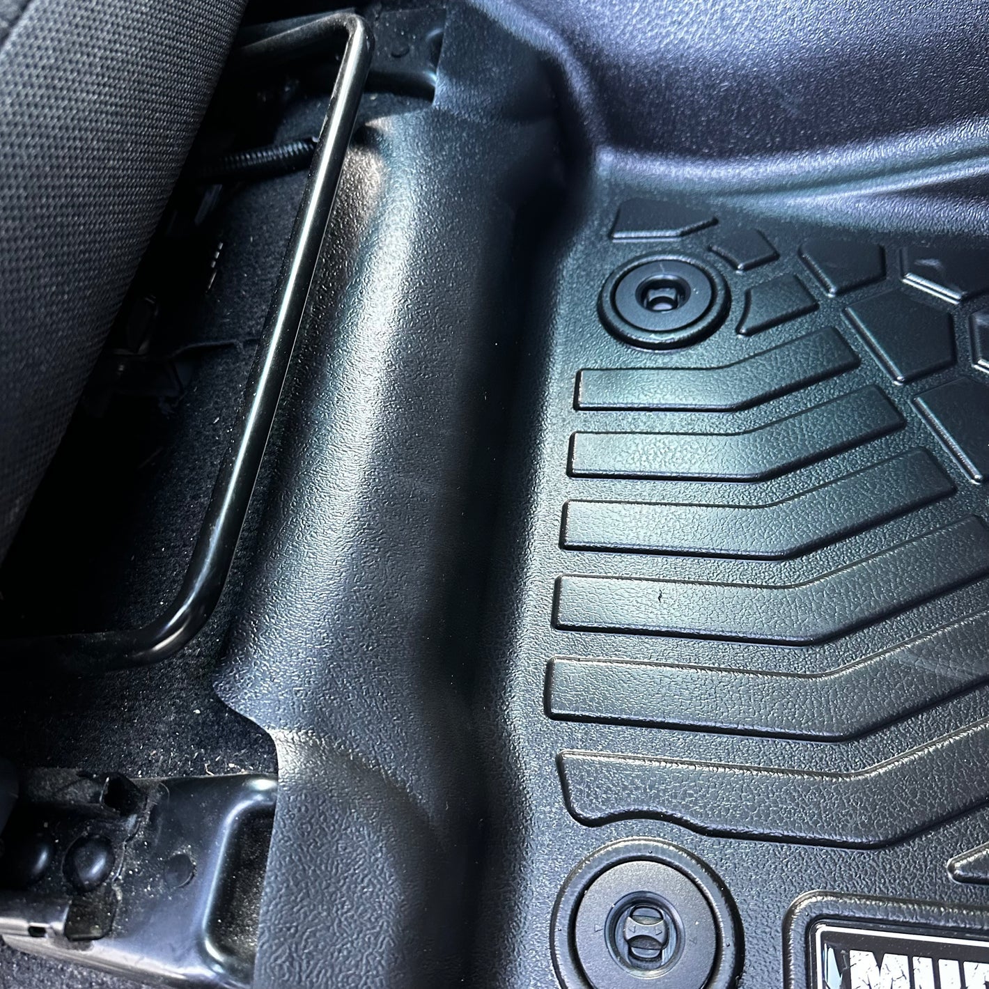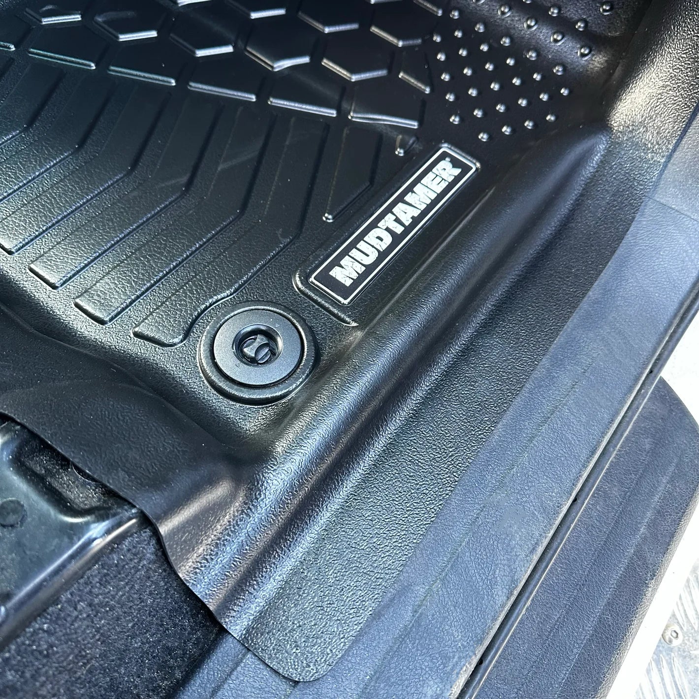 Running high up along the side of your transmission tunnel keeps our mats in contact with your vehicle while being a key component of our deep dish design. This high rise side ensures anything spilt doesn't reach the carpet along the transmission tunnel or under your MUDTAMER mat and prevents wearing through.