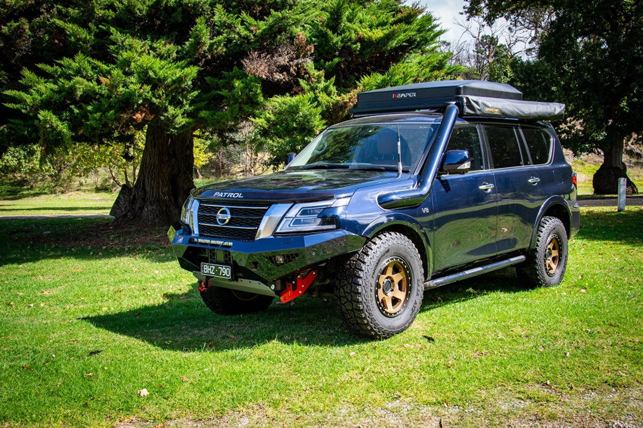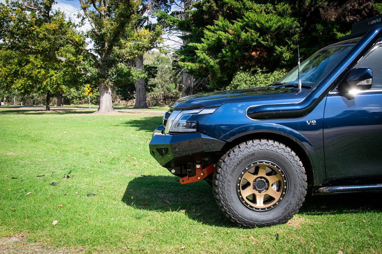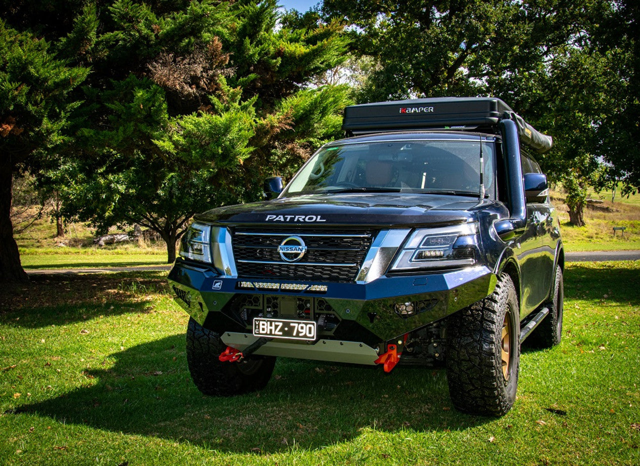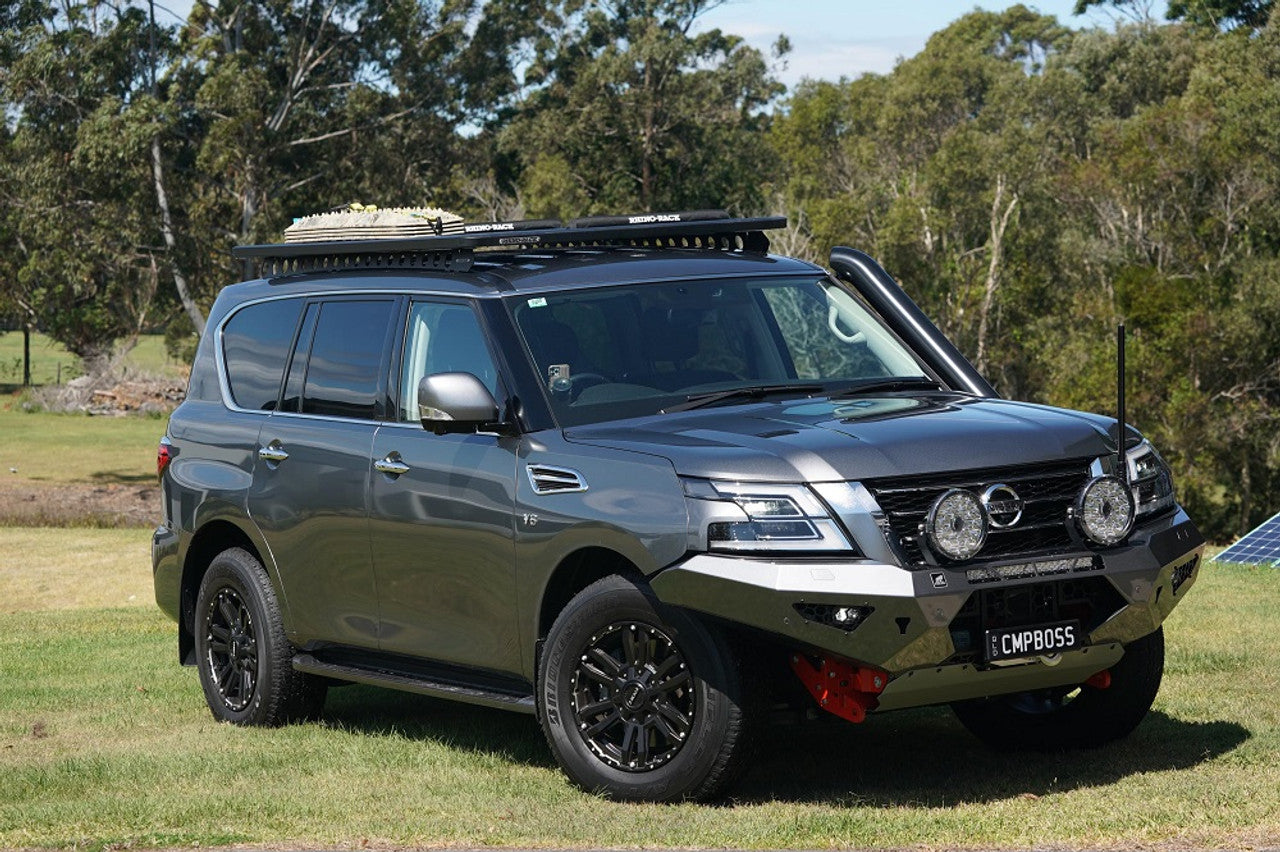 The S5 Patrol finally looks good. No offence to Nissan but the older Y62 models didn't quite have a tough look about them, however the Series 5 fixed that with a much improved front end. Well the Cobra bar from Offroad Animal makes it look even better. You can give a serious face lift to your Patrol and give it that cool aggressive look that will make you smile every time you look at it. Not only does this bar look the part but it's super functional as well. A great platform for a winch and lights and does the job of protecting the front from animal strikes and offroad mishaps.