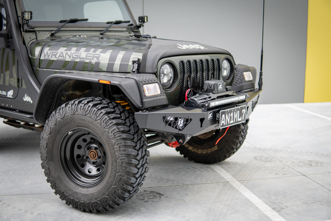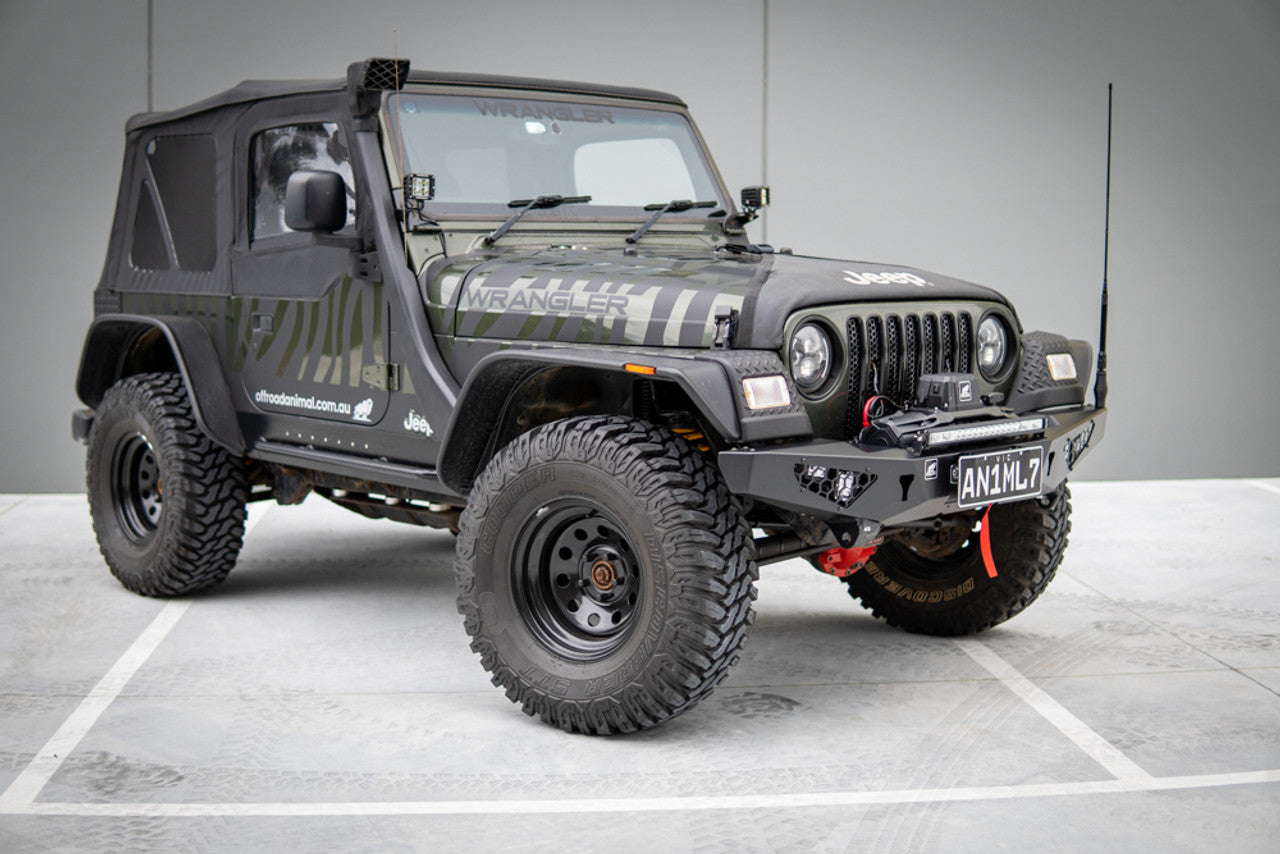 Yeah the TJ is not the newest shiniest rig on the block, but that doesn't mean you can't make it look seriously kick arse with an Offroad Animal Predator bar. Ditch the old huge heavy bar or non-compliant American one you already have, or just upgrade from the lame factory bumper. The Predator bar not only looks the part, it's super light and strong, and has ability to carry all your offroad Accessories like winches, lights and antennas.