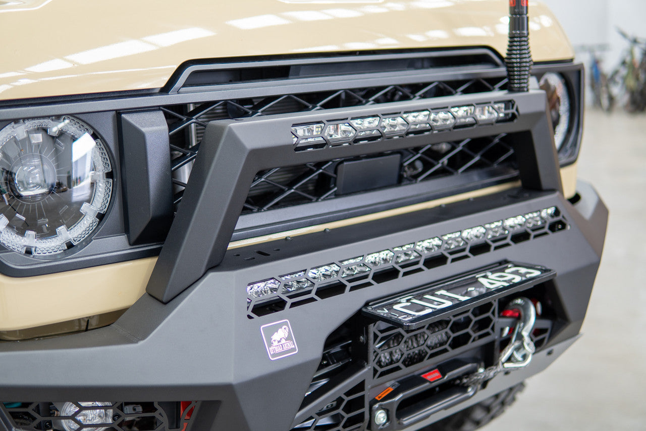 While the bumper takes most single row led light bars (we suggest the Offroad Animal 32" single row)