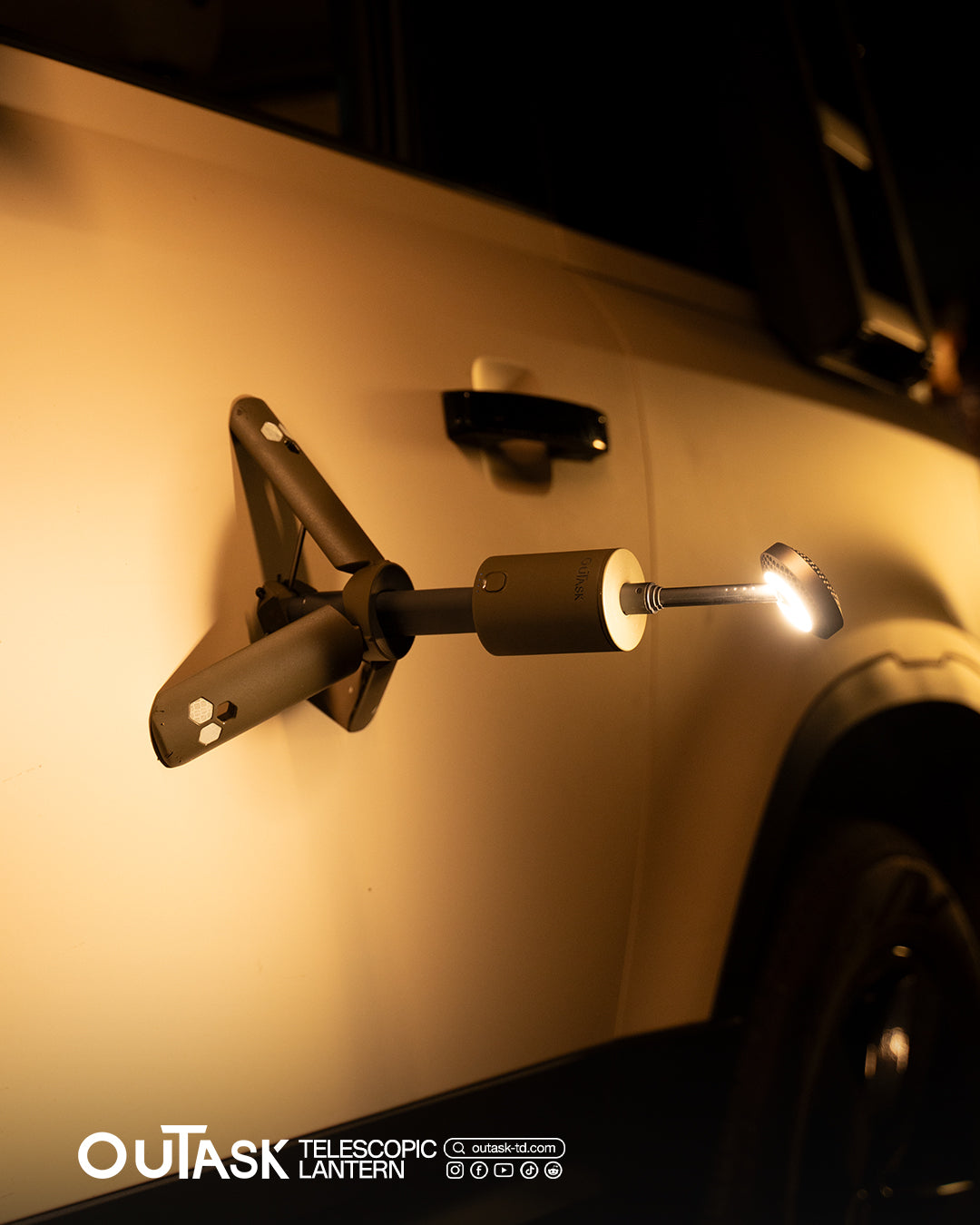 A single light that covers nearly every job around camp or on the roadside. This telescopic lantern stores in a compact, water‑bottle‑size body, then pulls up to almost a metre high when you need it! No extra stand, no fiddly setup.